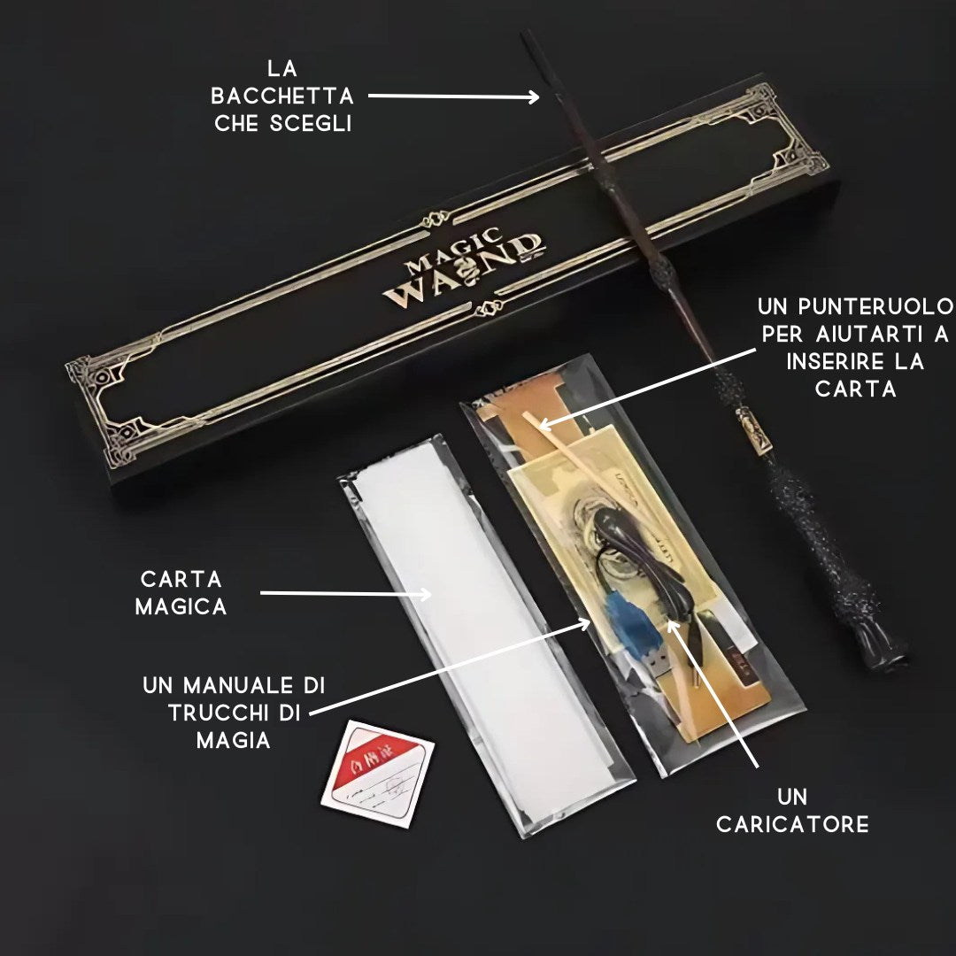 È molto semplice! Accendi la tua bacchetta, inserisci una pergamena incantata, lancia il tuo incantesimo... e guarda la magia prendere vita in una fiamma spettacolare