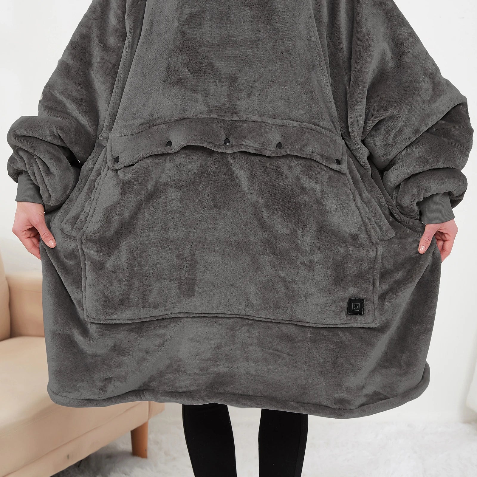 Erleben Sie maximale Wärme und Komfort mit dem beheizten Poncho. Dieser bequeme Kapuzenponcho ist der perfekte Begleiter für kalte Herbst- und Wintertage. Egal, ob Sie zu Hause oder unterwegs sind, hüllen Sie sich in einen dicken Flanell und verstauen Sie das Nötigste bequem in der Vordertasche. Begrüßen Sie Wärme und Entspannung und verabschieden Sie sich von der Kälte!